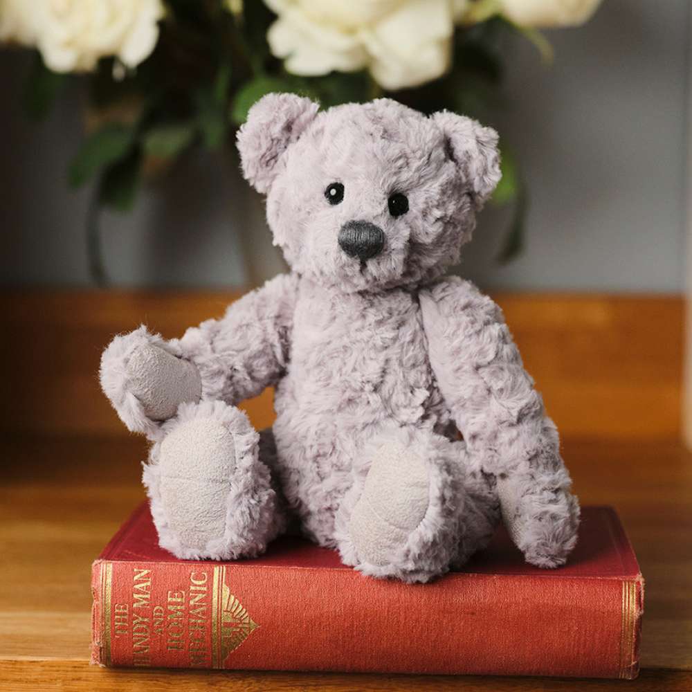 Meet Gorgeous George from the 2026 Plush Collection by Charlie Bears, a lovable classic bear crafted for comfort and charm. He’s always ready for snuggles, hugs, and a forever home. His design is simple and classic, with thoughtful details that give him a warm, familiar feel from the very first cuddle. A real traditional teddy bear. Made from luxuriously soft light grey plush, he’s fully jointed to sit, rest, or pose with a playful personality.  He has a quietly charming personality that invites a cuddle or simply a place on your shelf to bring a touch of warmth to any room. His hand-embroidered dark grey nose and gentle expression make him the perfect cuddly companion.